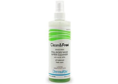 - Mild, rinse-free body wash, shampoo, and perineal cleanser that cleans and refreshes without water